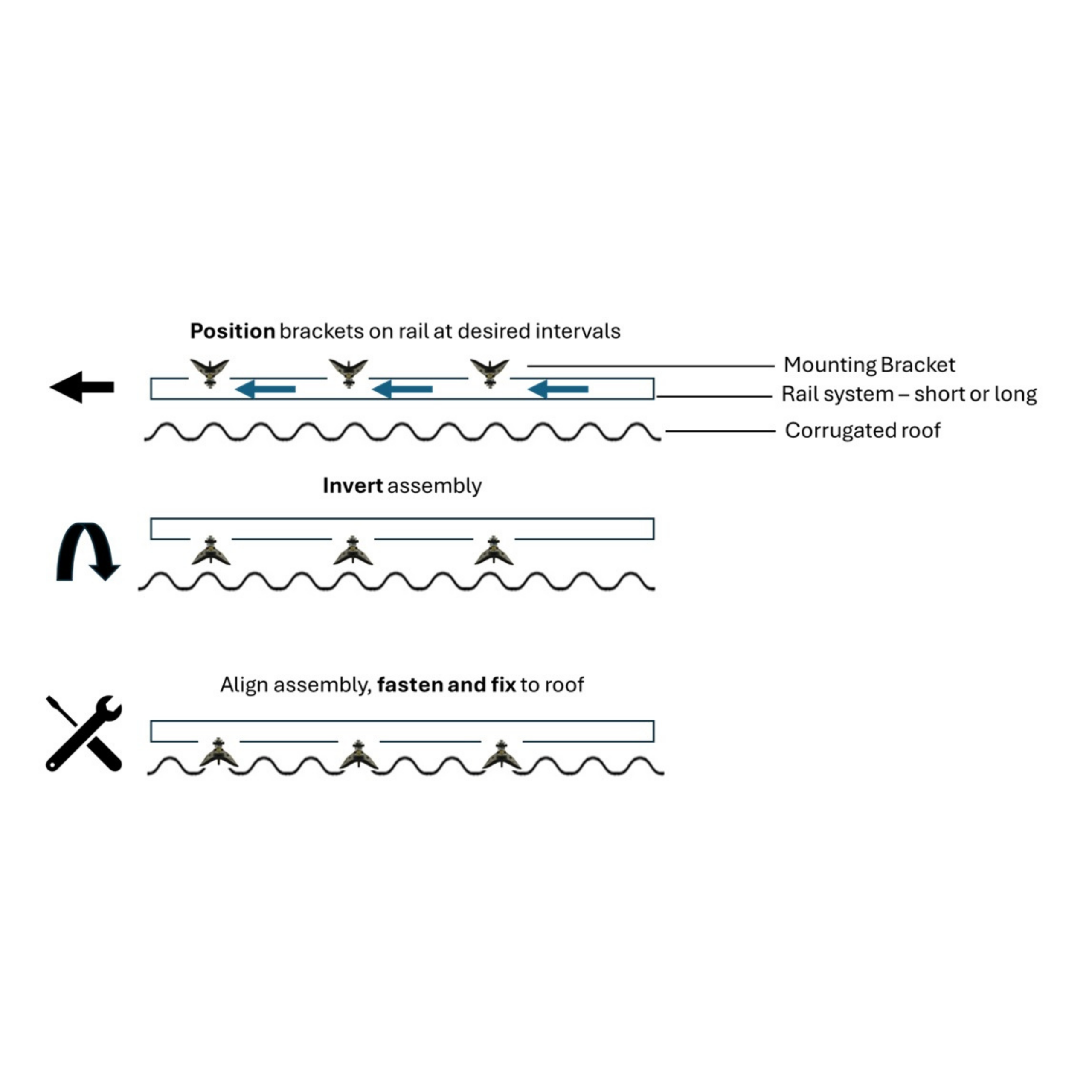 - Fasteners: Tek screws (inland – Zinc plated – Class 1 /2) OR Stainless Steel (Class 5) Tek screws- suggested for Coastal areas – (Additional charge) – Options for both Corrugated and IBR Roof brackets